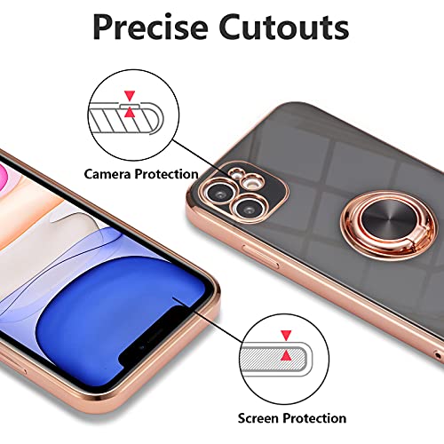 EYZUTAK Cover magnetica in silicone morbido resistente agli urti con anello girevole a 360° in metallo zincato per iPhone 12 Mini 5,4", nero