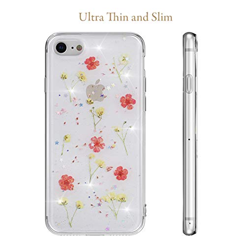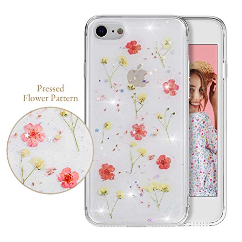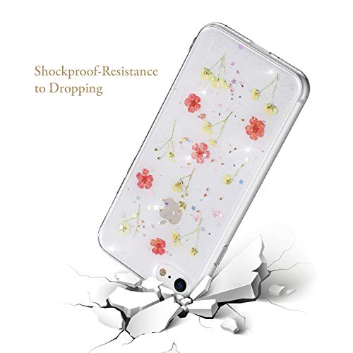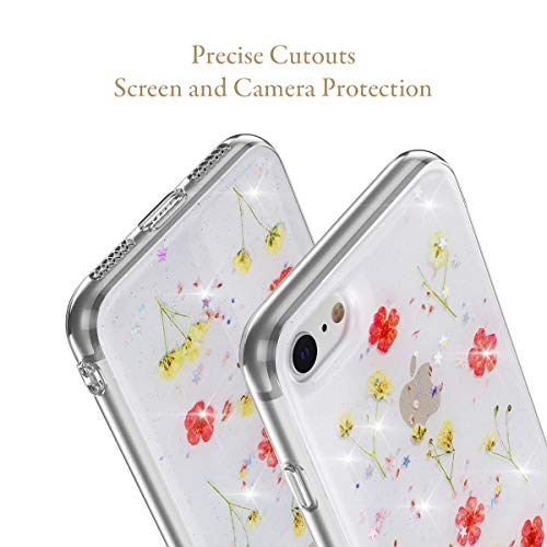 EYZUTAK Custodia a fiori secchi per iPhone SE (5G) 2022 iPhone 7 iPhone 8 iPhone SE 2020, custodia protettiva in gel di silicone con motivo floreale antiurto trasparente - rosa-1