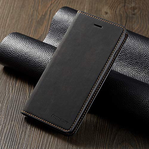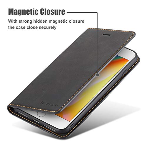 EYZUTAK Custodia per iPhone SE (5G) 2022 iPhone 7 iPhone 8 iPhone SE 2020, custodia protettiva a libro in pelle PU premium con supporto per carte di credito Custodia protettiva a portafoglio in poliuretano termoplastico con supporto per carte di credito Custodia con chiusura magnetica nascosta - Nero