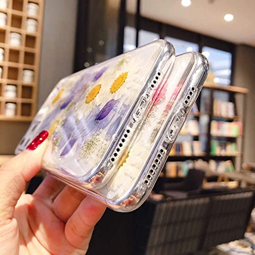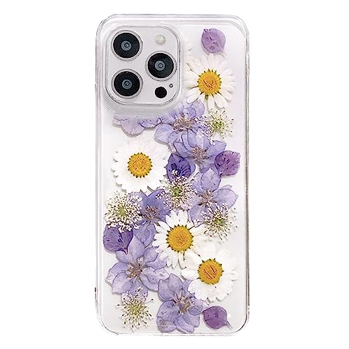 EYZUTAK Custodia per iPhone 13 Pro Max 6,7 pollici, trasparente morbido gel TPU gomma flessibile fatta a mano vero fiore essiccato foglia incorporata floreale pressato protettivo donne ragazze