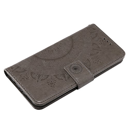 EYZUTAK Mandala - Custodia a portafoglio per Samsung Galaxy S8, ultra sottile, con slot per schede di memoria, chiusura magnetica, in pelle PU, con funzione di supporto e cordino, colore: Grigio