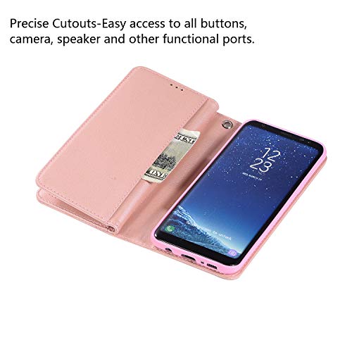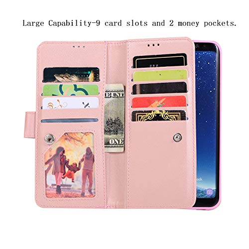 EYZUTAK Portafogli per Samsung Galaxy S7, custodia in pelle PU a portafoglio con 9 scomparti per carte di credito, funzione di supporto, oro rosa