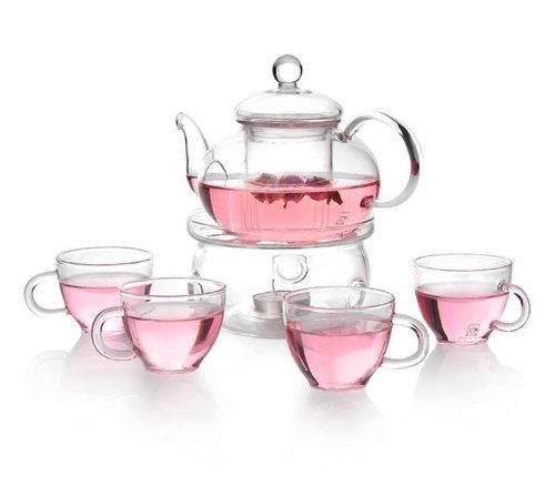 Ez-buy teiera di vetro resistente al calore 800 ml/793,8 gram per fiori di tè + 4 tazze + scaldino