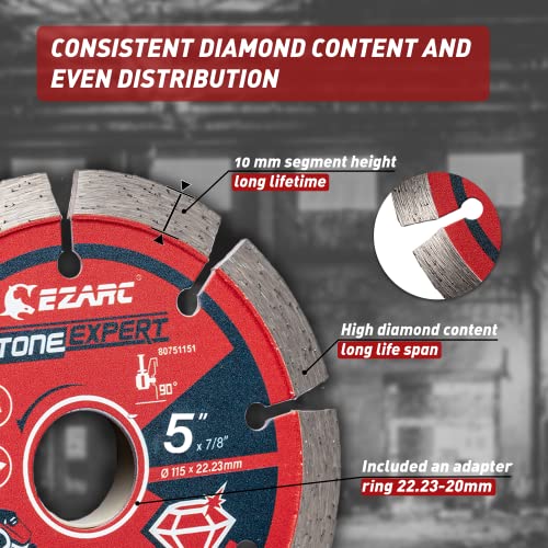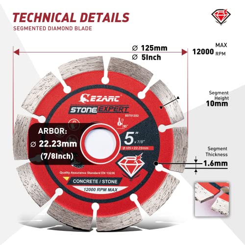 EZARC 125mm Disco Diamantato, 2 Pezzi Dischi Diamantati Segmento, Taglio a Secco e Umido per Cemento Granito, Pietra, Mattoni, Marmo, etc.