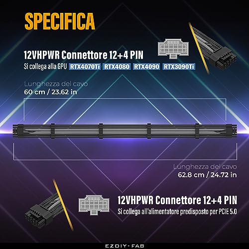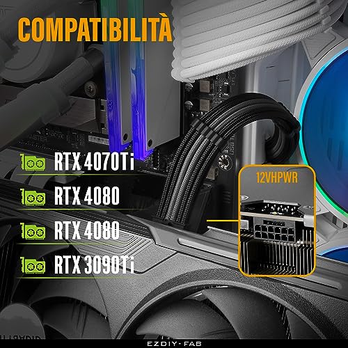 Si prega di notare che il cavo di estensione con guaina per GPU non è adatto alle GPU GeForce RTX serie 30' a 12 pin. Supporta solo GPU femmina a 12+4 pin come RTX 3090Ti, RTX 4080, RTX 4090 e serie 40'.