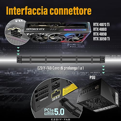EZDIY-FAB Cavo a Manicotto 16AWG PCI-e 5.0 12VHPWR PSU,600W Cavo da 12+4 pin Maschio a 12+4 pin Maschio per RTX 3090Ti/4070Ti/4080/4090, 60cm/23.62in-Nero Grigio