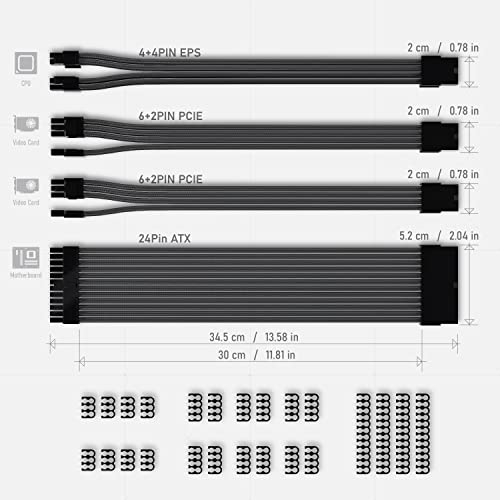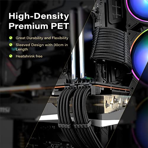 EZDIY-FAB Cavo Psu Prolunga Mod Personalizzato Per Alimentatore Pc Morbido Nylon Intrecciato Con Kit Pettine 24Pin / 8Pin A 6 + 2Pin / 8Pin A 4 + 4Pin-30Cm 300Mm (Nero)