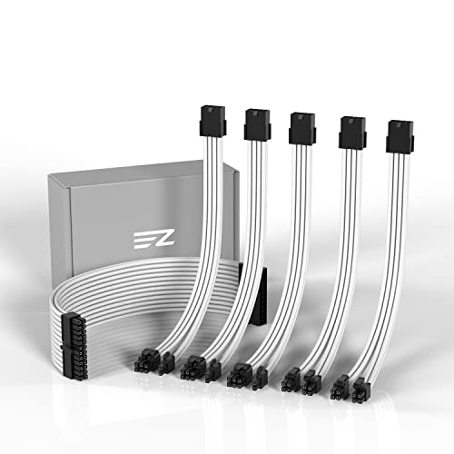EZDIY-FAB Kit di prolunga per cavi PSU,Cavo ATX,Intrecciato,Morbido Nylon Intrecciato con Pettine da 24 PIN/3 da 8 pin a 6 + 2 pin, 2 da 8 pin a 4 + 4 pin da 300 mm-Bianco