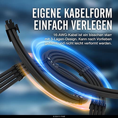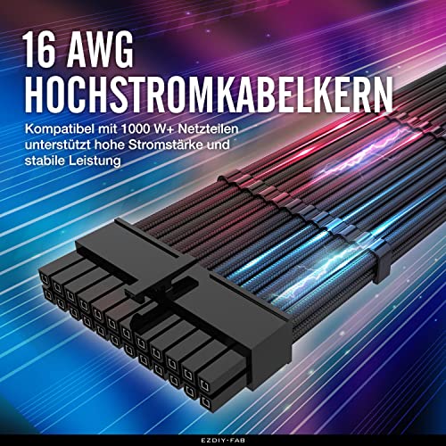 EZDIY-FAB MOD Sleeved Cable - Cavo Prolunga per Alimentatori con Extra Sleeves 300mm-Nero