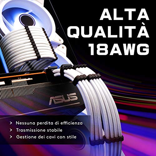 EZDIY-FAB Sleeved Cable-Prolunga per Alimentazione 24pin/8pin (4+4) M/B,8pin (6+2) PCI-E Kit Cavo di Prolunga 500mm Lunghezza-Nero e Rosso