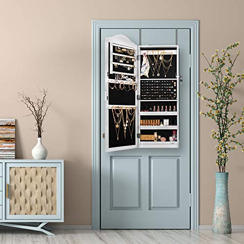 Ezigoo Specchio Portagioielli - Specchio da Parete - Armadietti Portagioie Portagioie Grande Bianco con Anta a Specchiera Porta Gioielli Specchio Camera da Letto