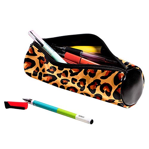 Ezioly, astuccio da colorare in pelle leopardata per penne, portamonete, trousse per trucco per scuola, lavoro e ufficio
