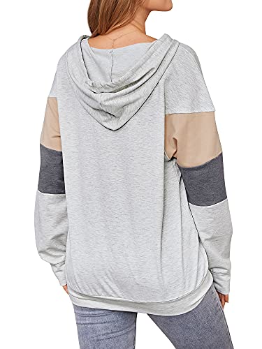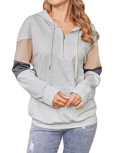 EZKOL Felpa da donna con cappuccio, a maniche lunghe, con mezza zip, casual, con cappuccio, con coulisse, taglie S-XXL, albicocca, XXL