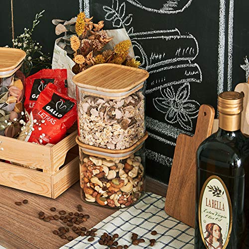 MATERIALI DI ALTA QUALITÀ - Coperchi in legno di bambù di alta qualità con una chiusura ermetica in silicone e vetro borosilicato trasparente ad alta trasparenza che offre una maggiore resistenza alla temperatura per un uso duraturo. Il coperchio in legno di bambù e il vetro offrono un design minimalista e moderno per completare la cucina o l'arredamento della casa.