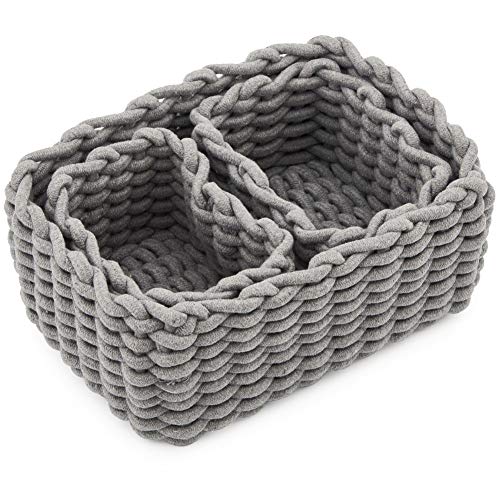 EZOWare Set di 3 Cesto Contenitore Organizer Tessuto Corda di Cotone, Perfetti per riporre Oggetti di Piccole Dimensioni - Grigio