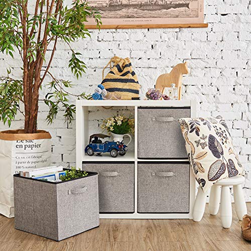 EZOWARE Cesto Pieghevole, Contenitore Portaoggetti Portabiancheria Deposito per Giocattoli, Vestiti, Dvd, Libri, Alimenti, Lenzuole, e Arte - Grigio e Nero, Confezione da 4 (33 x 38 x 33 cm)