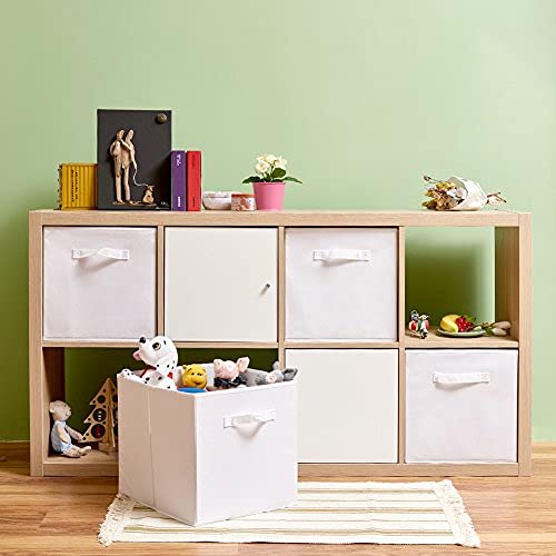 EZOWARE Cesto Pieghevole, Organizzatori Contenitore Cestino Cubi in Tessuto Non Tessuto (33 x 37 x 33 cm) per Giocattoli, Vestiti, Casa, Asilo Nido - Confezione da 4 / Bianco