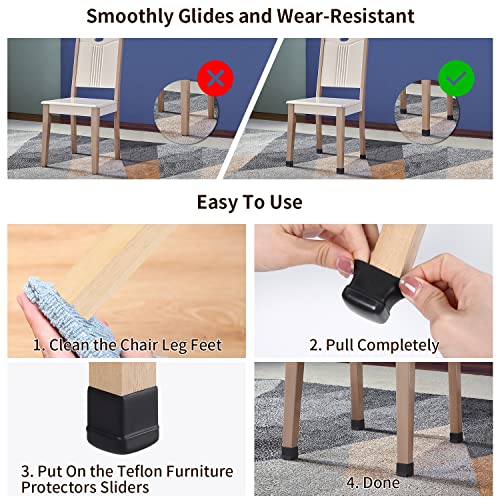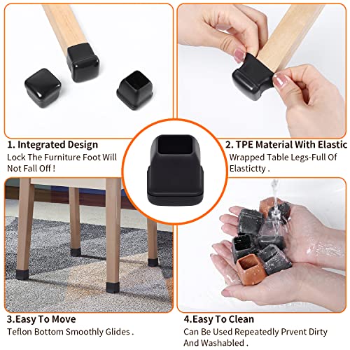 Il cuscinetto avvolto non cadrà mai: i nostri cursori per gambe della sedia per tappeti sono aggiornati e ispessiti con fondo avvolto (fino a 10 mm). I piedini quadrati per sedia per tappeto sono realizzati in gomma termoplastica di alta qualità, resistente ed elastico. Sono facili da infilare, non c'è bisogno di attaccare, semplici da avvolgere e non cadono facilmente. 16 feltrini per mobili e combinazione di protezione per piedi in elastomero termoplastica che non si staccherà mai