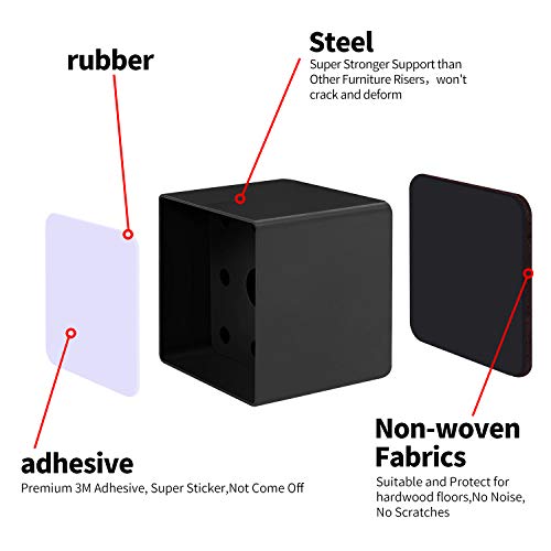 Ezprotekt Rialzi per Letto Rialzi per Mobili Resistenti per Divano, Tavolo, Divano, Altezza di Sollevamento di 1,2 pollici,Solido Acciaio Che Offre un Forte Supporto, set di 4, Piazza Nero