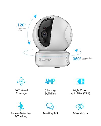 EZVIZ C6CN 4MP Telecamera di Sorveglianza 2K, Telecamera Wi-Fi Interno, Copertura visiva a 360°, Audio Bidirezionale, Maschera Intelligente della Privacy, Tracciamento del Movimento, Cloud, Alexa