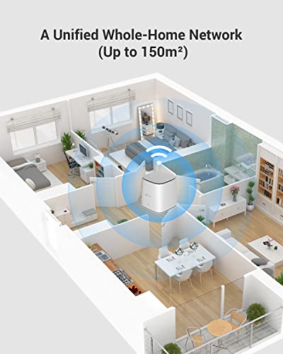 【Forte Segnale Wi-Fi】EZVIZ W3R Mesh Solo offre una potenza di segnale Wi-Fi sufficiente a coprire fino a 150m². Volete una copertura maggiore per case più grandi? Più unità W3R possono lavorare insieme per ampliare la rete.