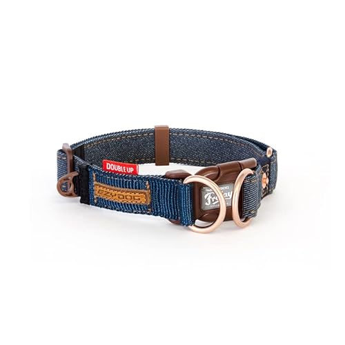 EzyDog Collare per cani in nylon - Double Up - Collare per cani di piccola taglia e media e grande - Riflettente, imbottito, regolabile (L, denim)