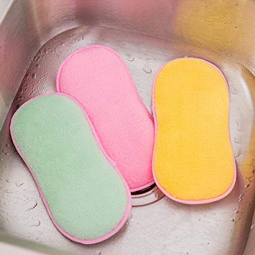 EZZLife - Set di 30 spugne antibatteriche a doppia faccia per strofinare, non odori, antiaderenti, pentole antiaderenti, pentole e pentole (1 rosa + 1 verde + 1 giallo)