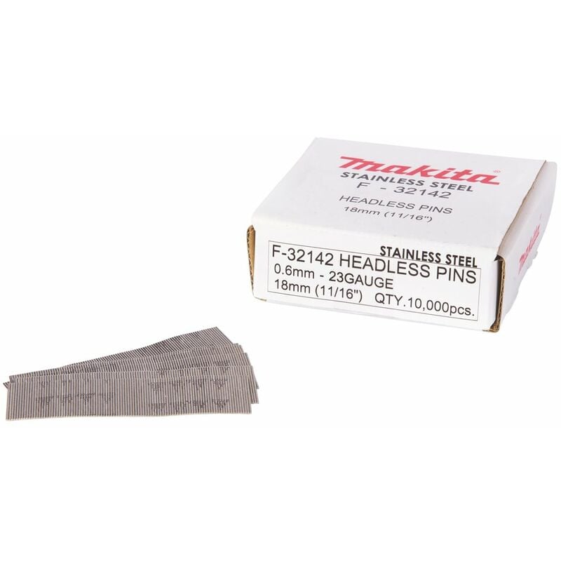 Spilli Makita F-32142 per modelli: AF500HP, BPT350, BPT351, DPT350, DPT351, DPT353, PT354D. Lunghezza: 18mm Larghezza filo: 0,6mm Spessore Filo: 0,6mm