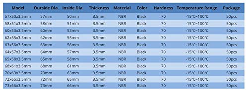 F-MINGNIAN-SPRING 50pcs NBR 3,5 Millimetri Spessore Gomma O-Ring Guarnizioni 57/58/60/62/63/64/65/68/70/72 / 73mm OD O Anelli Hole guarnizioni di Tenuta Rondelle (Taglia: 57x50x3.5mm)