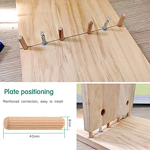 Faankiton 500 Pezzi Tasselli in Legno 8x40mm, Scanalate in Legno, Perni di Legno Duro Perno Scanalato, Spine Legno per Progetti di Artigianato di Mobili e Fai Da Te
