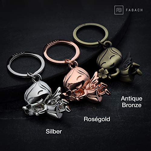 FABACH - Portachiavi con angelo custode portafortuna con quadrifoglio, ciondolo di metallo adatto come regalo o per l'auto, oro rosa, Taglia unica