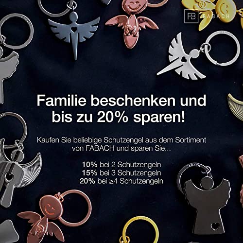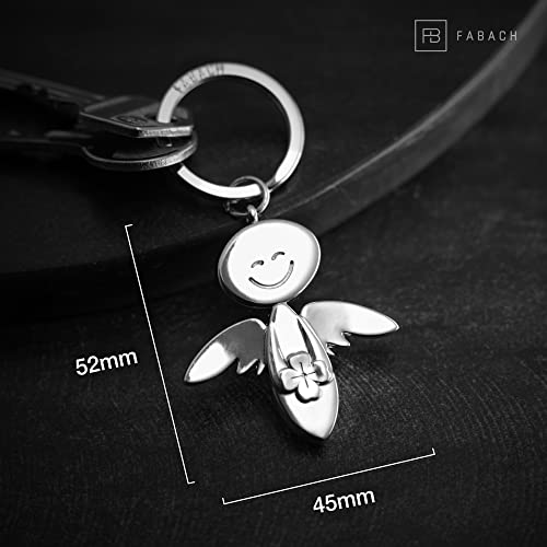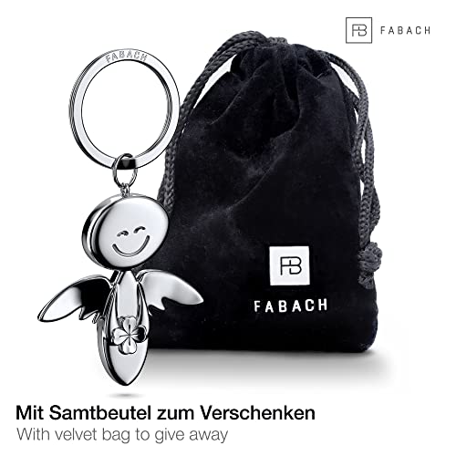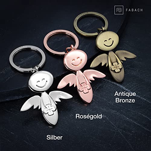 FABACH Portachiavi con angelo custode Smile con quadrifoglio - angelo portafortuna in metallo - Buon successo portafortuna auto ciondolo angelo - regalo buona fortuna, argento, taglia unica