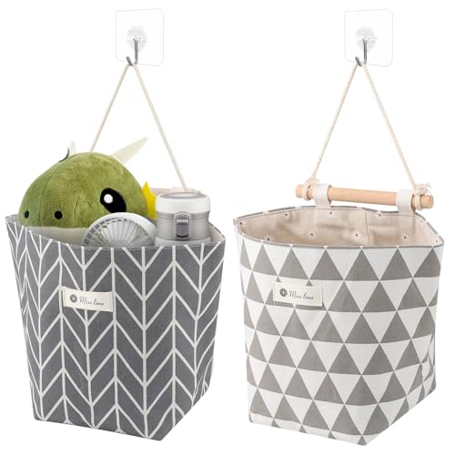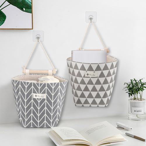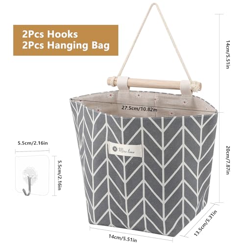 Fabaoday Borsa Portaoggetti da Parete,2pcs Portaoggetti da Parete con manico e 2 ganc, Borsa Lino e Cotone Appendere Sacca, per Casa L'ufficio del Bagno Della Camera