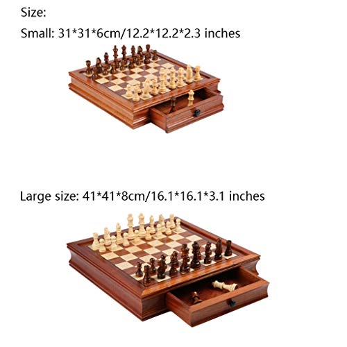 FABAX Scacchiera Gioco Set di Scacchi in Legno massello con Doppio cassetto Magnetico Pezzi a Mano Pezzi di Scacchiera Multifunzione for Giochi di Scacchi Adulti Scacchi (Dimensione: Large)