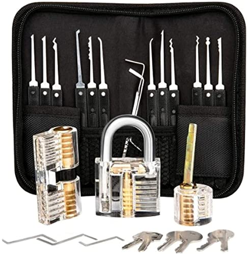 Set Fabbro, Set Grimaldelli da 26 Pezzi Grimaldelli Lock Picking con 2 Trasparente Fabbro Lucchetto con Borsa di e Istruzioni, Pratica Aprire le Serrature Set per Fabbri Principianti