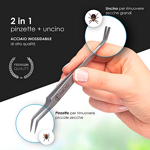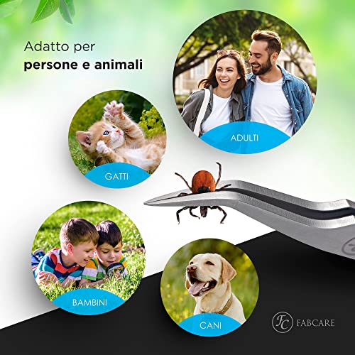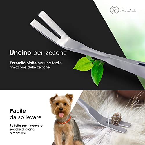 FABCARE 2 in 1 Pinza per zecche - pinzetta per zecche e uncino zecche - incl. Custodia, e-Book e Scheda rilevamento zecche - pinzetta zecche per Persone, Cani, Gatti - Dispositivo rimozione zecche