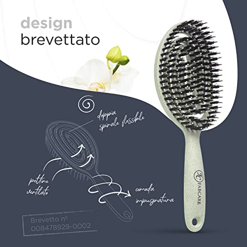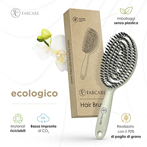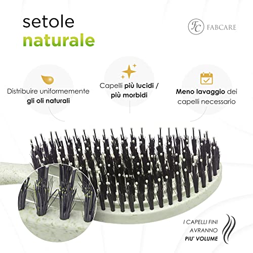 PIÙ LUCENTEZZA E VOLUME - La spazzola con setole di cinghiale Fabcare permette una migliore distribuzione di oli naturali e maschere, così da garantirti sempre capelli sani, lucenti e voluminosi.