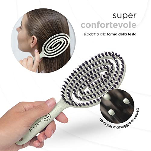 FABCARE Spazzola Capelli con Setole di Cinghiale e Doppia Molla a Spirale - Spazzola Districante per Capelli Professionale per Ogni Tipo di Capelli (Verde)