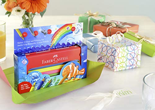 Faber-Castell 110908 - Set di matite colorate Jumbo Grip per il mondo sottomarino, in astuccio di metallo