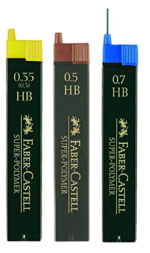 Confezione risparmio con 3 astucci di mine di ricambio Faber-Castell (12 pezzi da 0,35 mm, 0,5 mm e 0,7 mm).