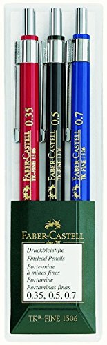 Faber-Castell 130622 - Portamine TK-FINE, astuccio da 3 pezzi (una matita da 0,35 mm, 0,5 mm e 0,7 mm), confezione risparmio Geo Clever Set