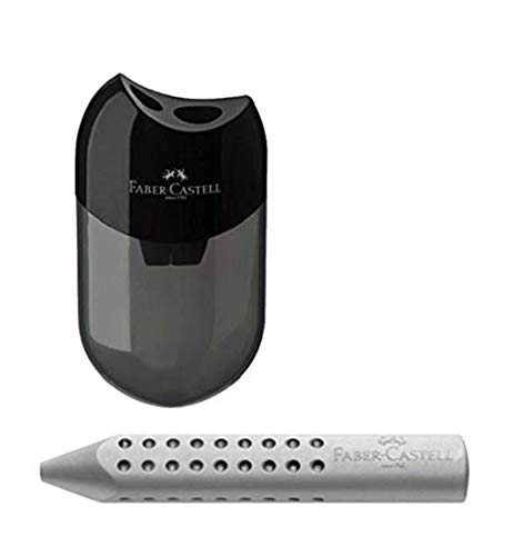 Faber-Castell 183500 Doppio temperamatite, di colore nero/trasparente, in set con gomma da cancellare triangolare di colore grigio