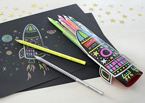 Faber-Castell 201643 - Matite colorate Colour Grip"Rakete" con 5 colori fluo e 5 colori metallizzati