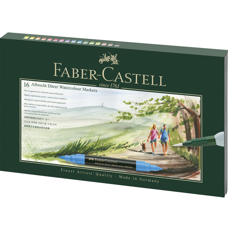 Pennarello acquerellabile a base acqua per artisti. Pigmenti di alta qualità con eccellente forza del colore e resistenza alla luce. Il pennarello ha una doppia punta per contorni, disegni dettagliati e linee precise. L'inchiostro non penetra nella carta. Contenuto: 16 pennarelli e 1 pennello ad acqua.
