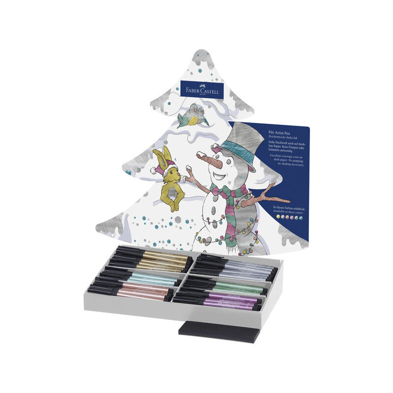 Pennarello da disegno con pigmentazione metallica di alta qualità con eccellente forza del colore, elevata resistenza alla luce e rilascio del colore uniforme. I pennarelli sono molto adatti per carta colorata e nera e hanno una lucentezza metallica. L'inchiostro è a base d'acqua, inodore e i pennarelli scrivono direttamente. Display del contenuto: 25x oro metallizzato / argento metallizzato 10x rame metallizzato / rubino metallizzato / blu metallizzato / verde metallizzato.