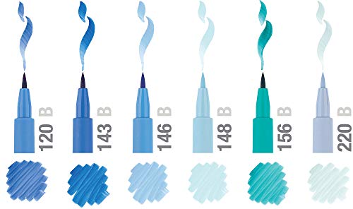 Faber-Castell - Set 6 penne Pitt artist pen, toni di blu, punta a pennello
