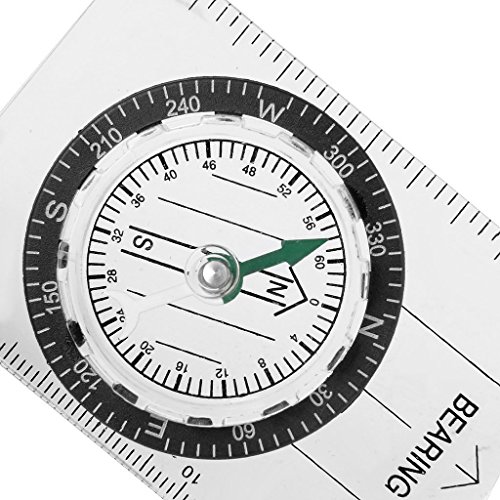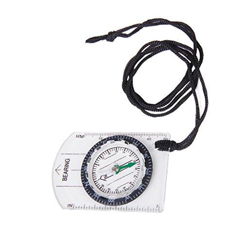 Strumento di sopravvivenza di emergenza ideale per la fauna selvatica all'aperto, escursioni, campeggio, arrampicata, spedizione di avventura o qualsiasi altra attività all'aria aperta. Con righello MM e pollici su ogni lato della bussola. Con tracolla per il collo, comodo per il trasporto. Alta precisione per misurare la direzione. Piastra di base trasparente.