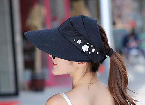 Fablcrew - Cappello da spiaggia a tesa larga, con visiera, pieghevole, regolabile, protezione UV, colore: Nero