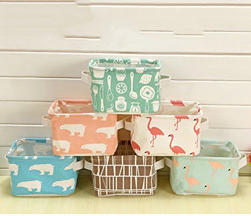 Fablcrew, cesta portaoggetti in lino con fenicotteri da scrivania per riporre gioielli, cosmetici, cancelleria, Cotone lino, Green, 21x 16x 13.5cm