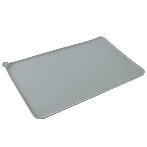 Fablcrew - Tappetino di alimentazione in silicone, per animali da compagnia, anti-fuoriuscite, impermeabile, per cani e gatti, dimensioni: 48,5 x 30 x 0,5 cm, colore: Grigio